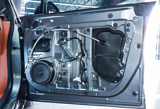 ประตูหลังติดตั้งแผ่นแดมป์เก็บเสียงรถไฟฟ้า AION V รถ EV ช่วยลดเสียงรบกวนจากภายนอก พร้อมติดตั้งลำโพง 6 นิ้ว ของ Hertz