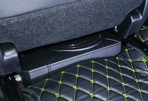 รถยนต์ ALL NEW ISUZU MU-X ติดตั้งลำโพง Sub box Alpine Pw s800 ไว้ใต้เบาะ สามารถปรับเลื่อนเบาะได้เหมือนเดิม