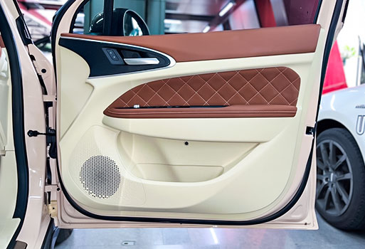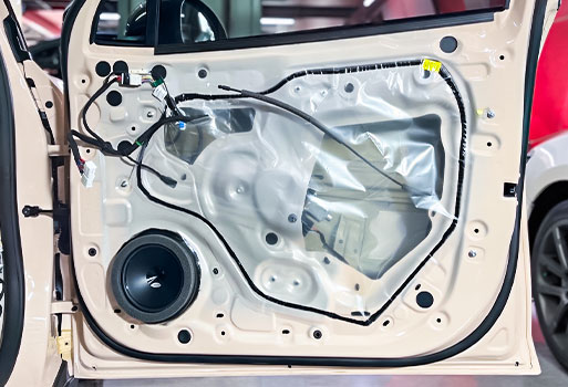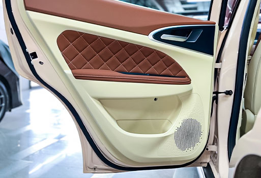 ประตูหลังติดตั้งลำโพง 6 นิ้วของ Hertz ใช้ปลั๊กตรงรุ่นพร้อมออกแบบสเปย์เซอร์และเอ็กซ์ตร้าลิ้งค์ตรงรุ่นรถไฟฟ้า รถ ORA GOODCAT