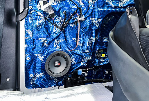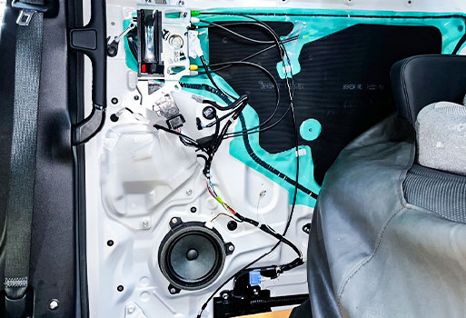 ติดตั้งลำโพงชุดใหม่พร้อมแดมป์เก็บเสียงประตูบานสไลด์ให้รถเงียบ เสียงดี
