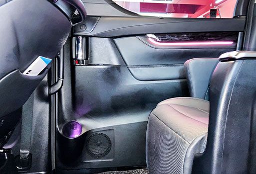 ติดตั้งลำโพงแบบแยกชิ้น พร้อมแดมป์เก็บเสียงประตูหน้ารถยนต์ TOYOTA ALPHARD