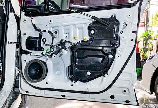 งานติดตั้งลำโพงชุดใหม่และประกอบแผงประตูได้เหมือนเดิม