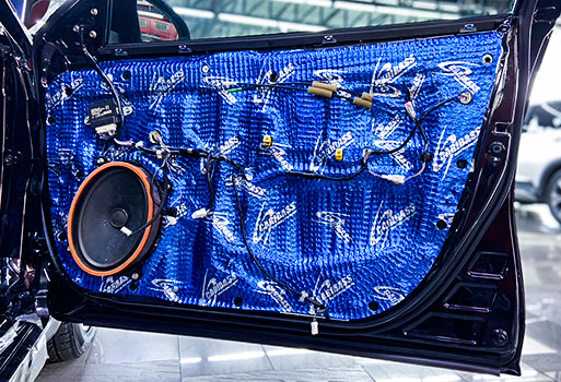 ลำโพงหน้าใช้ JBL ของเดิมรถยนต์ TOYOTA CAMRY ติดตั้งแผ่นแดมป์เก็บเสียงที่ประตู