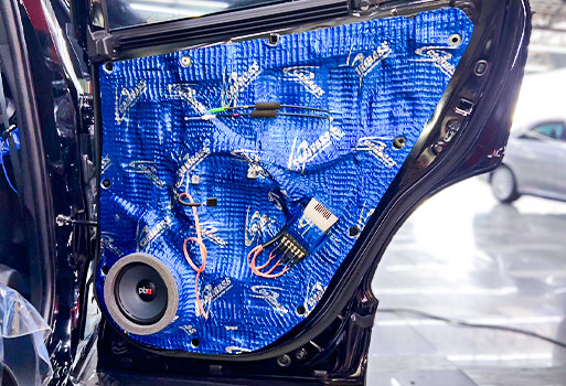 ติดตั้งลำโพงขนาด 6 นิ้ว ของ POWER BASS และแผ่นแดมป์เก็บเสียงที่ประตูหลังรถยนต์ TOYOTA CROSS