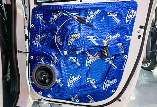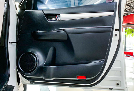 ติดตั้งแผ่นแดมป์เก็บเสียงและลำเปลี่ยนโพงชุดใหม่แบบแยกชิ้นที่ประตูหน้ารถยนต์ TOYOTA REVO ROCCO