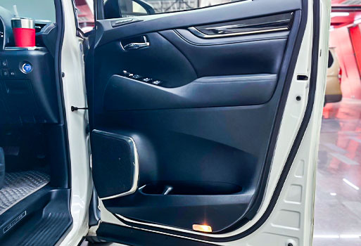 แผงประตูด้านหน้าก่อนติดตั้งแผ่นแดมป์เก็บเสียงและก่อนเปลี่ยนลำโพงชุดใหม่รถยนต์ TOYOTA Vellfire