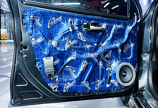ประตูด้านหลังติดตั้งแผ่นแดมป์และเปลี่ยนลำโพงชุดใหม่พร้อมออกแบบ Spacer ตรงรุ่นและเสริม Xtaring รถยนต์ Toyota Yaris Ativ