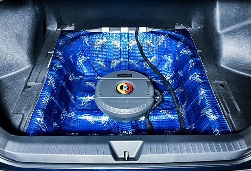 รถยนต์ Toyota Yaris Ativ ติดตั้งแดมป์ที่หลุมยางอะไหล่ลดการสะเทือน พร้อมติดตั้ง Sub หลุมยางอะไหล่ 11 นิ้ว Challenger เบสแน่นไม่เสียพื้นที่