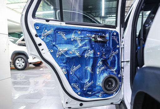 ประตูด้านหลังติดตั้งแดมป์เก็บเสียงและลำโพงชุดใหม่แบบแกนร่วม แทนลำโพงเดิมรถยนต์ TOYOTA YARIS CROSS