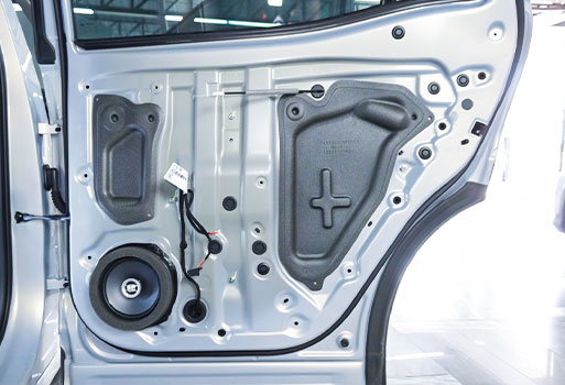 ประตูหลังรถไฟฟ้า AION V รถ EV ติดตั้งลำโพง 6 นิ้ว ของ Powerbass แทนลำโพงเดิมได้พอดี