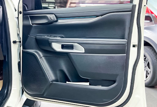 ประตูหลังติดตั้งลำโพงเสียงกลางและลำโพงทวิสเตอร์เข้าช่องเดิมรถยนต์ Ford Everest Next Gen
