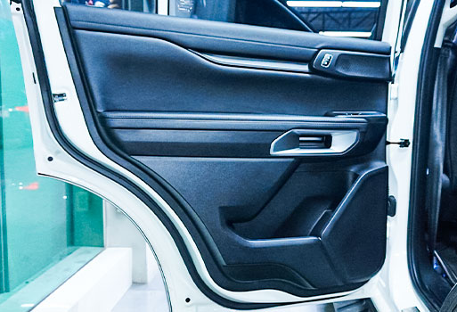 ประตูหลังติดตั้งลำโพงเสียงกลางและลำโพงทวิสเตอร์เข้าช่องเดิมรถยนต์ Ford Everest Next Gen