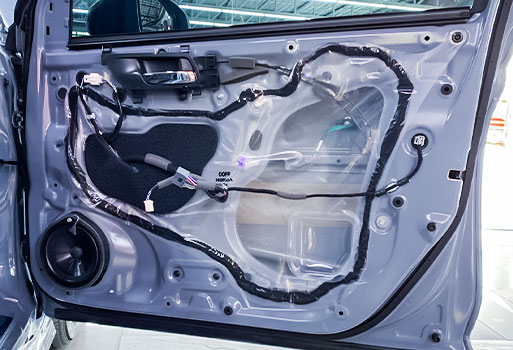 แผงประตูหน้ารถยนต์ HONDA CITY ก่อนติดตั้งแผ่นแดมป์และลำโพงชุดใหม่