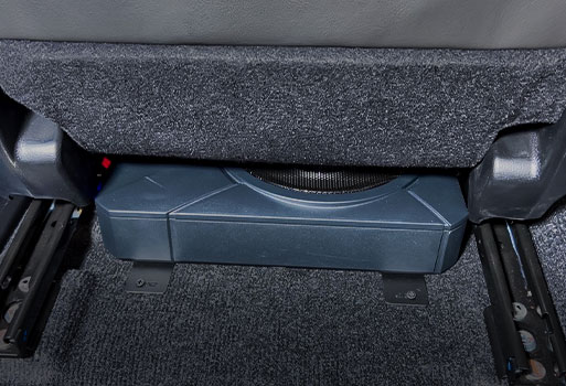 รถยนต์ ISUZU MU-X ติดตั้งลำโพง Sub box Alpine ไว้ใต้เบาะ สามารถปรับเลื่อนเบาะได้เหมือนเดิม