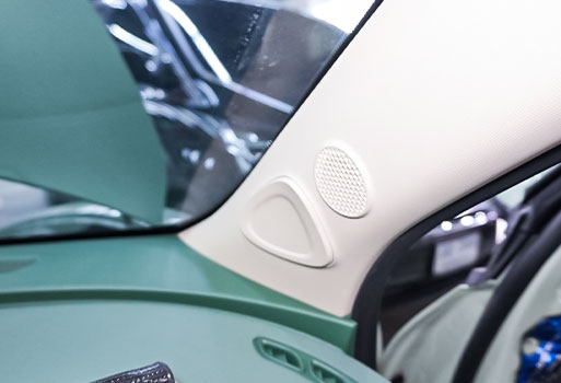 รถไฟฟ้า รถ ORA GOODCAT รถ EV ติดตั้งแผ่นแดมป์เก็บเสียงเพื่อลดเสียงรบกวนจากภายนอกพร้อมติดตั้งลำโพง 6 นิ้วของ Powerbass ใช้ปลั๊กตรงรุ่นไม่ตัดต่อสาย