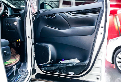 แดมป์เก็บเสียงประตูหน้ารถยนต์ TOYOTA ALPHARD และติดตั้งลำโพงชุดใหม่