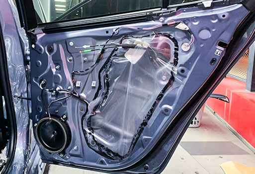 ประตูด้านหลังก่อนติดตั้งแผ่นแดมป์เก็บเสียงและลำโพงชุดใหม่