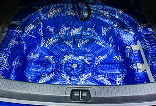 ติดตั้งแผ่นแดมป์เก็บเสียงที่หลุมยางอะไหล่ของ CARIBASS เพื่อลดการสั่นสะเทือน