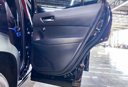 ติดตั้งลำโพงขนาด 6 นิ้ว ของ POWER BASS และแผ่นแดมป์เก็บเสียงที่ประตูหลังรถยนต์ TOYOTA CROSS