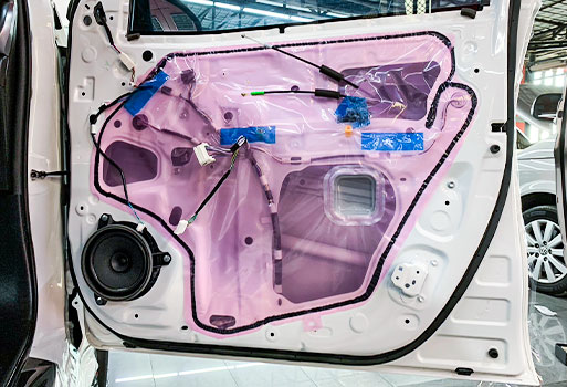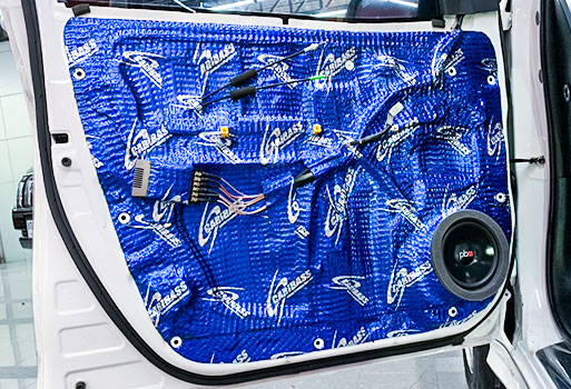 ติดตั้งแผ่นแดมป์เก็บเสียงและลำเปลี่ยนโพงชุดใหม่แบบแยกชิ้นที่ประตูหน้ารถยนต์ TOYOTA REVO ROCCO