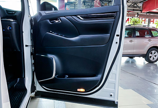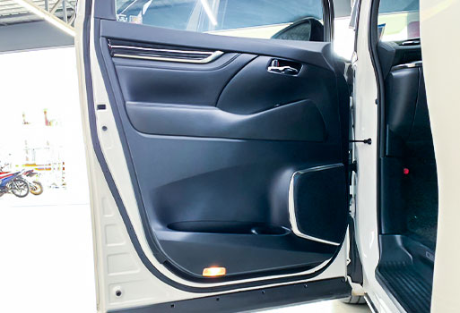 ประตูด้านหน้าติดตั้งลำโพงชุดใหม่ขนาด 6 นิ้ว แทนลำโพงเดิมรถยนต์ TOYOTA Vellfire