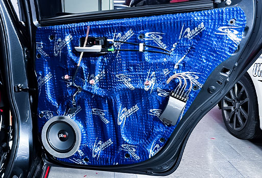 ประตูด้านหลังติดตั้งแผ่นแดมป์และเปลี่ยนลำโพงชุดใหม่พร้อมออกแบบ Spacer ตรงรุ่นและเสริม Xtaring รถยนต์ Toyota Yaris Ativ