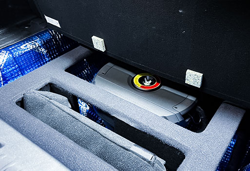 รถยนต์ Toyota Yaris Ativ ติดตั้งแดมป์ที่หลุมยางอะไหล่ลดการสะเทือน พร้อมติดตั้ง Sub หลุมยางอะไหล่ 11 นิ้ว Challenger เบสแน่นไม่เสียพื้นที่